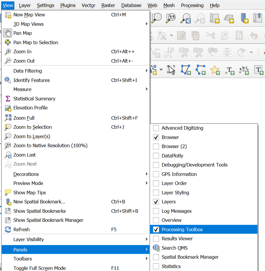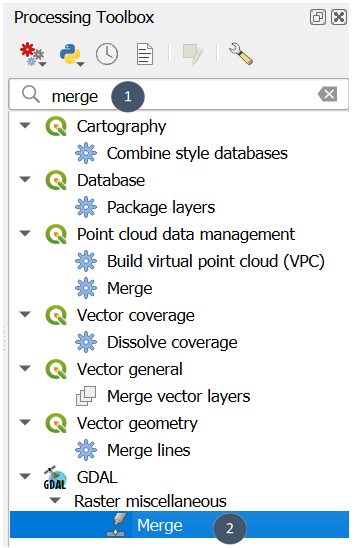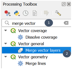1. In the QGIS Processing Toolbox, search for Merge vector layers.
