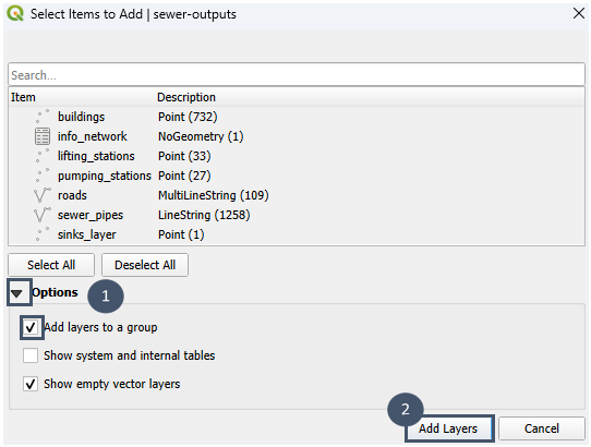 Step 1: Pre-designing the sanitation sewer network (Sewer network Module)¶