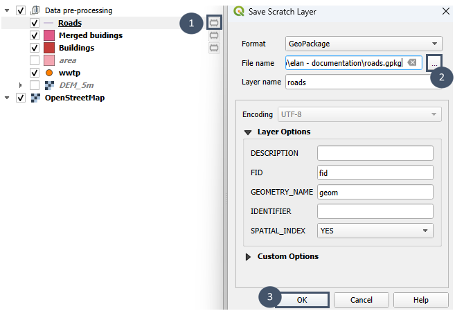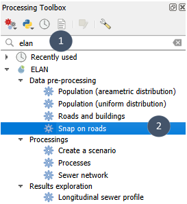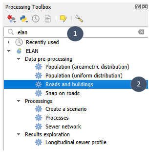 1. Search for elan in the Processing Toolbox and select Roads and Buildings.