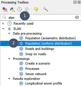 1. Search for elan in the Processing Toolbox and select Population (uniform distribution).