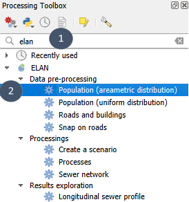 1. Search for elan in the Processing Toolbox and select Population (areametric distribution).