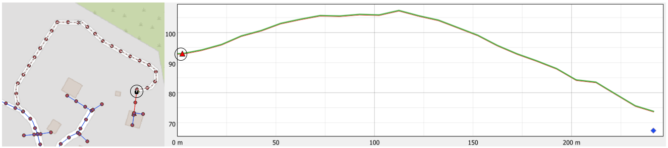 To explore the preliminary sizing proposed by the Sewer network module, in addition to the different styles available for the Sewer pipes layer, the Longitudinal sewer profile module and visualization of its outputs using QGIS’s Elevation Profile tool allow you to view the underground profile of a sequence of pipes.