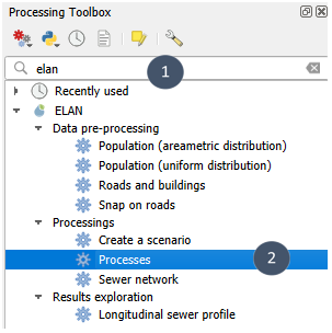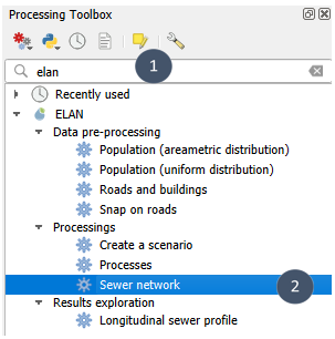 1. Search for elan in the Processing Toolbox and select Sewer network.