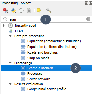 2. Search elan in the Processing Toolbox and select Create a scenario.